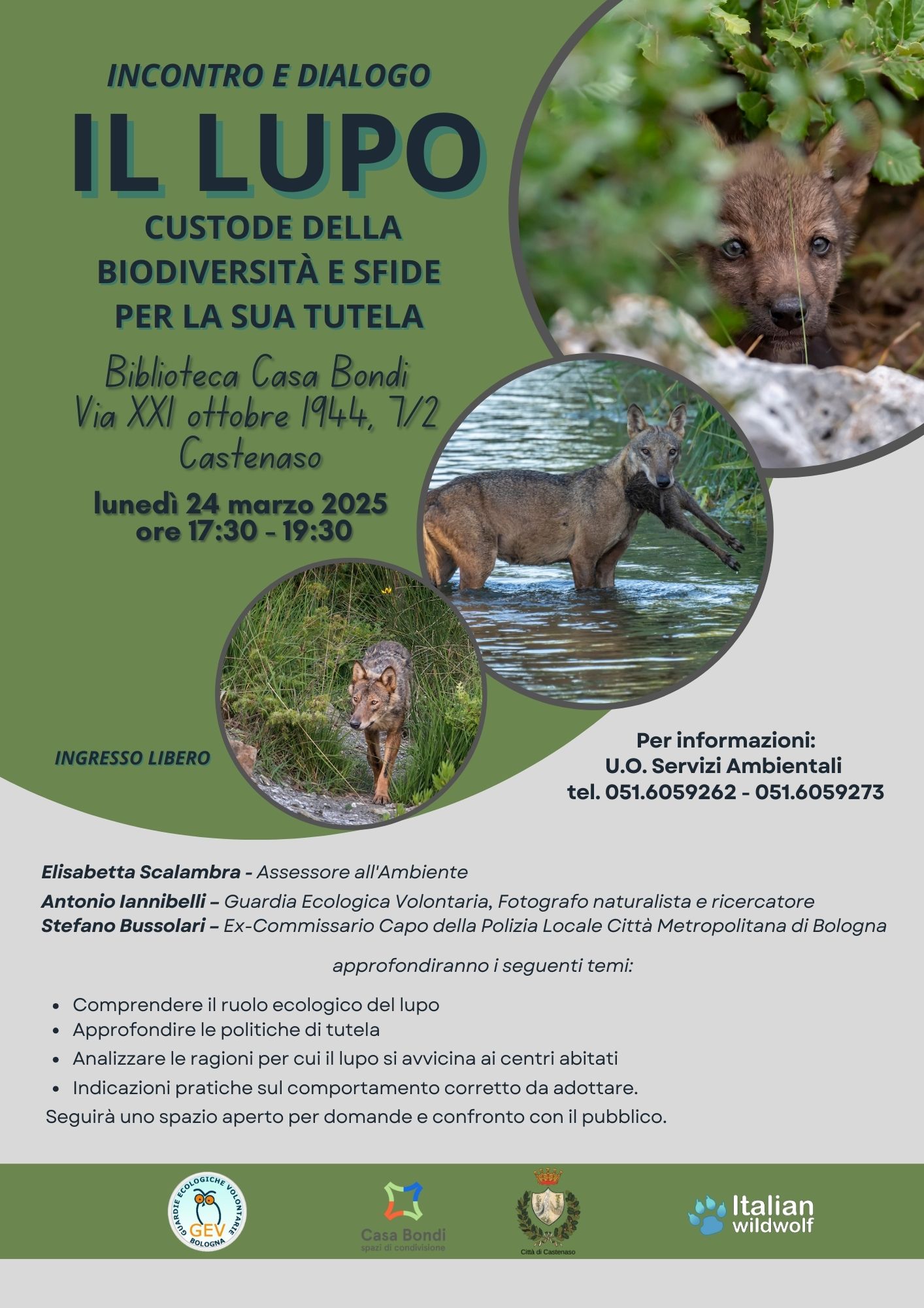 Lunedì 24 marzo alle ore 17.30 a Casa Bondi si terrà un incontro pubblico per approfondire questi temi. Interverranno esperti in materia che spiegheranno come una convivenza con questo affascinante animale sia possibile.