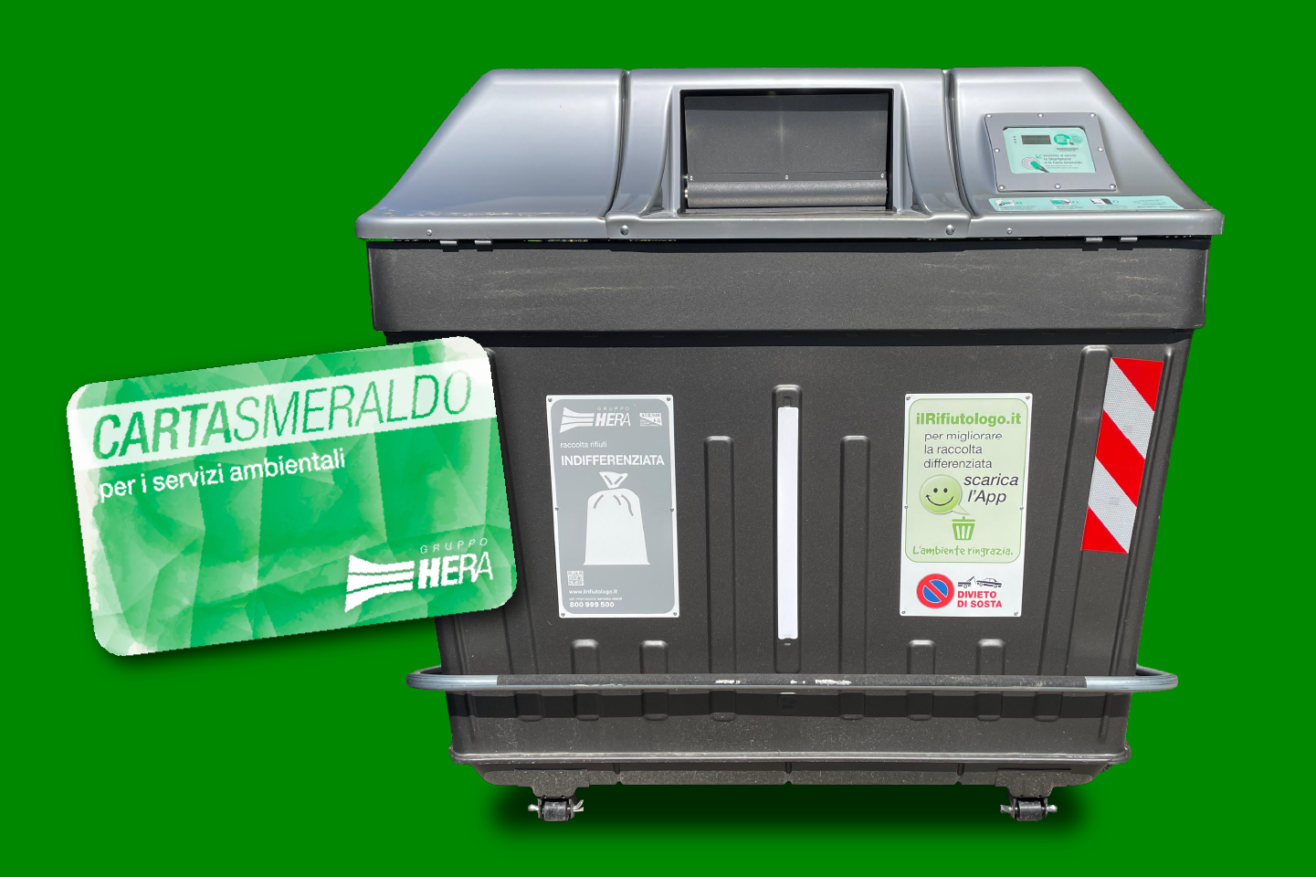 I cassonetti possono essere aperti anche tramite smartphone grazie a un codice messo a disposizione da Hera, chiamato Carta Smeraldo virtuale.