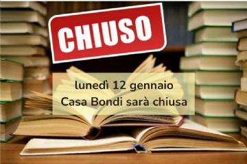 Si avvisa che la Biblioteca Casa Bondi resterà chiusa al pubblico per l'intera giornata di oggi lunedì 12 gennaio 2026.