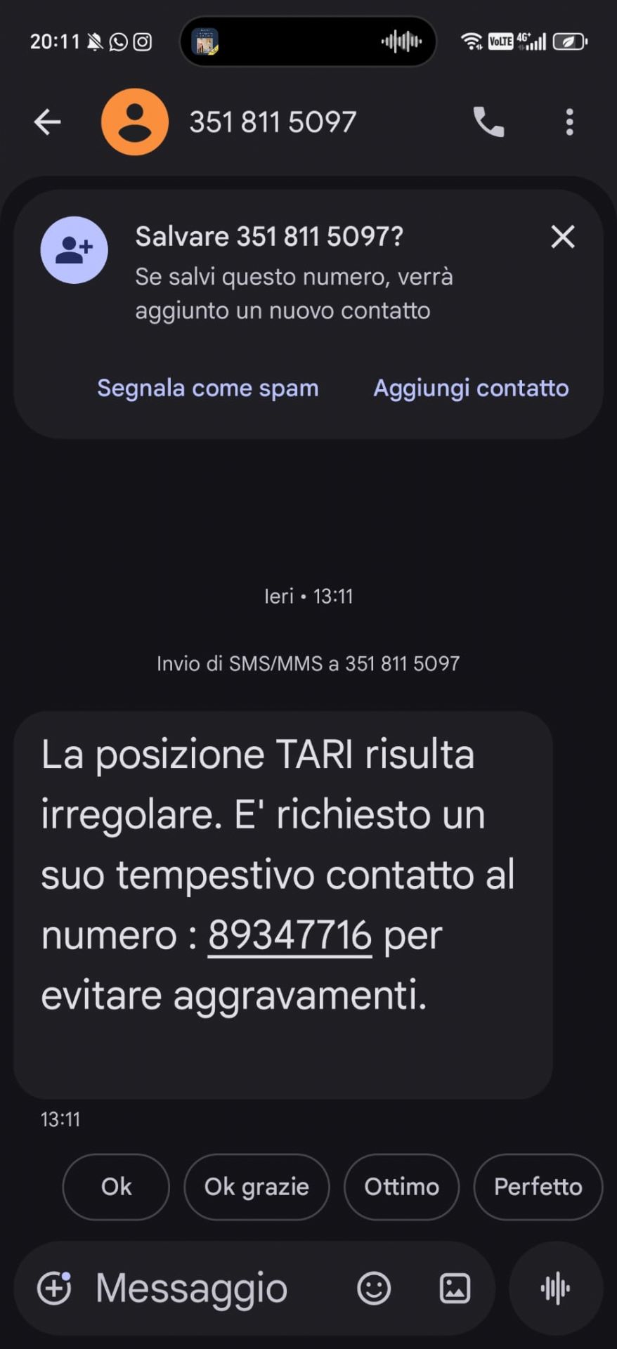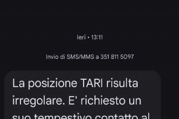 “La posizione TARI risulta irregolare, è richiesto un suo tempestivo contatto al 89349413 per evitare aggravamenti.” (vedi immagine in allegato)