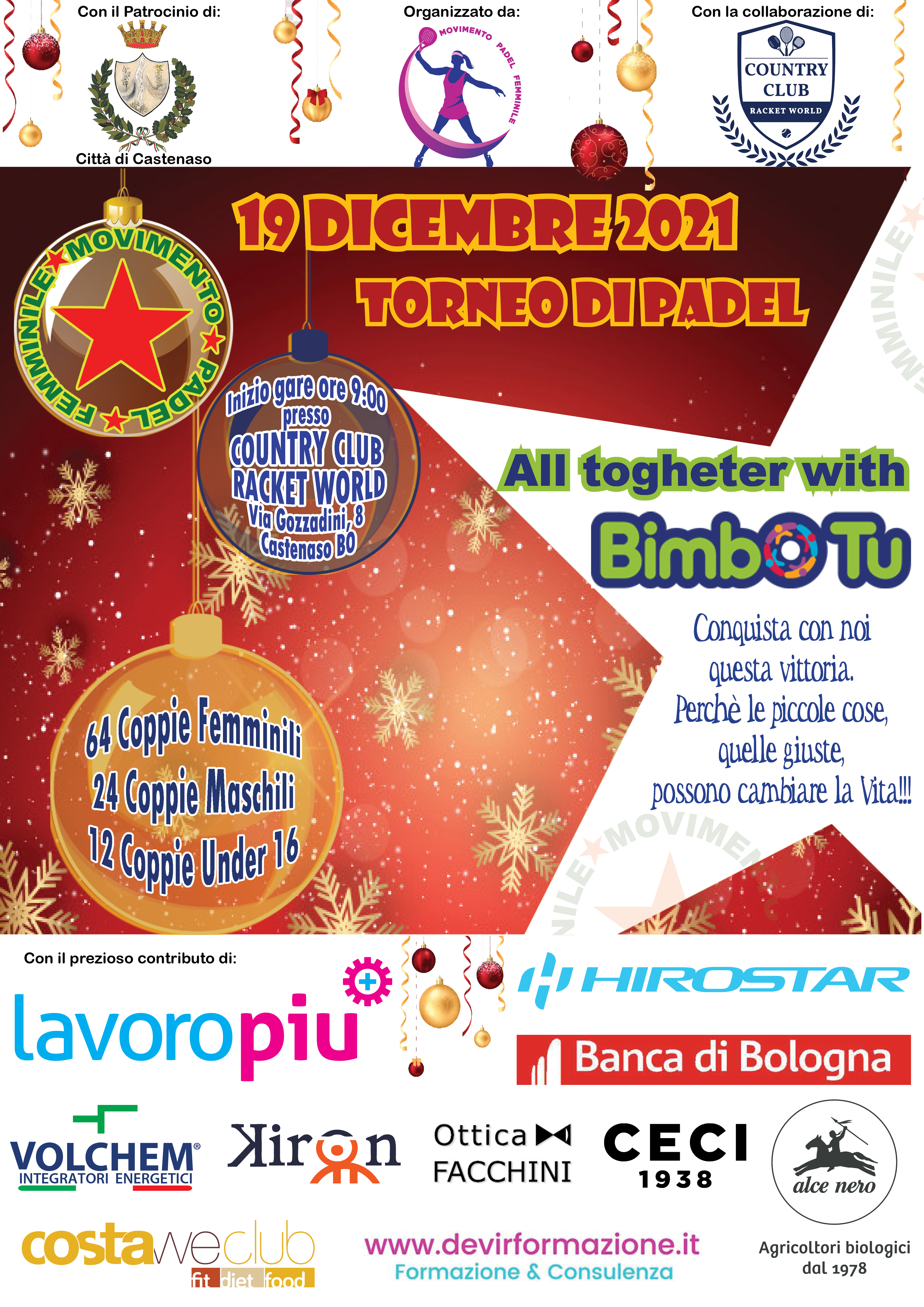 Dopo l’evento dello scorso giugno, domenica 19 dicembre 2021 il Movimento Padel Femminile torna al Country Club di Villanova per l’iniziativa benefica “All together with Bimbo Tu”, patrocinata dal Comune di Castenaso e supportata da altre realtà del territorio.