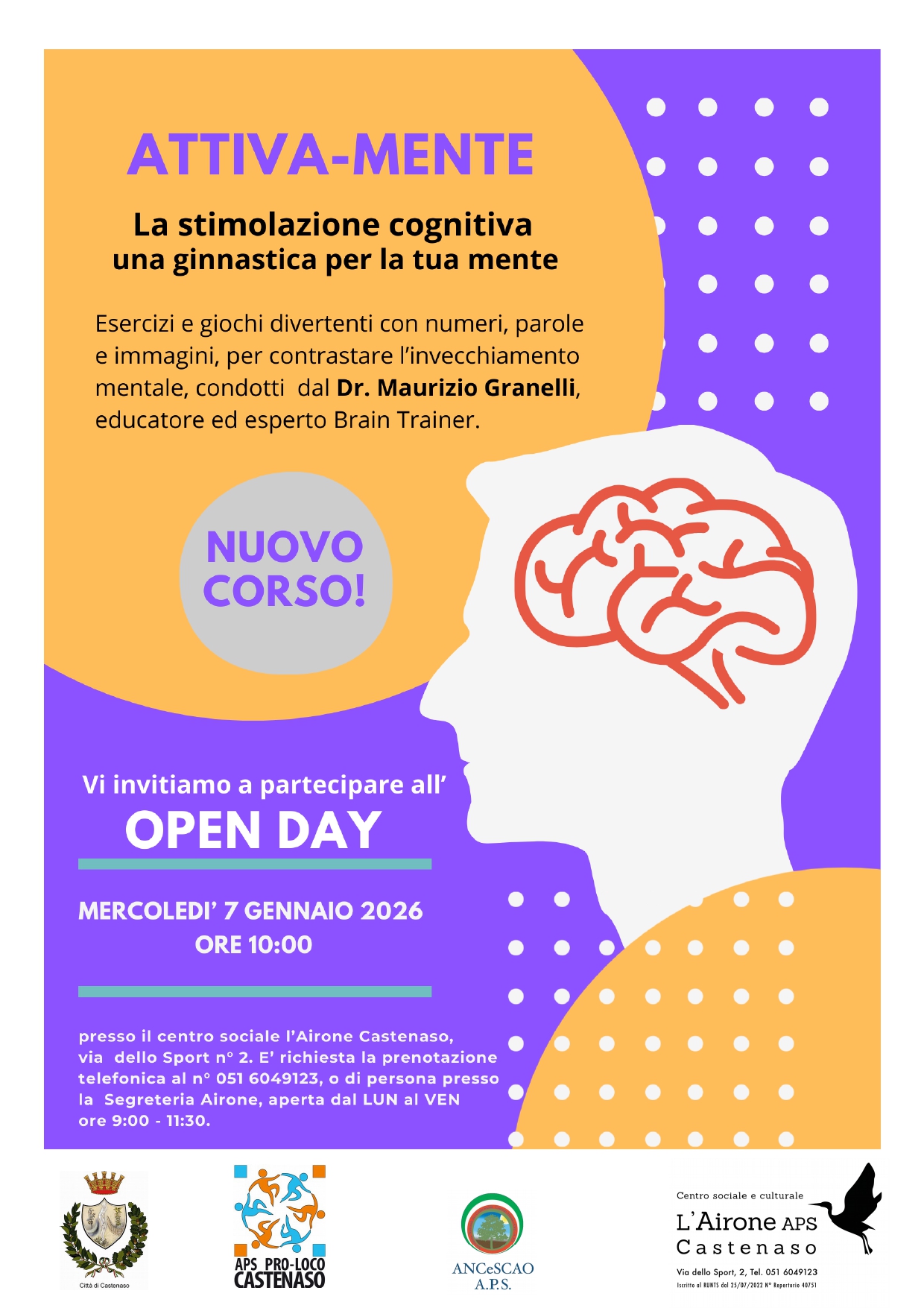La Pro Loco di Castenaso, in collaborazione con il Centro Sociale Airone, presenta ATTIVA-MENTE, un nuovo corso dedicato alla stimolazione cognitiva, pensato come una vera e propria ginnastica per la mente.