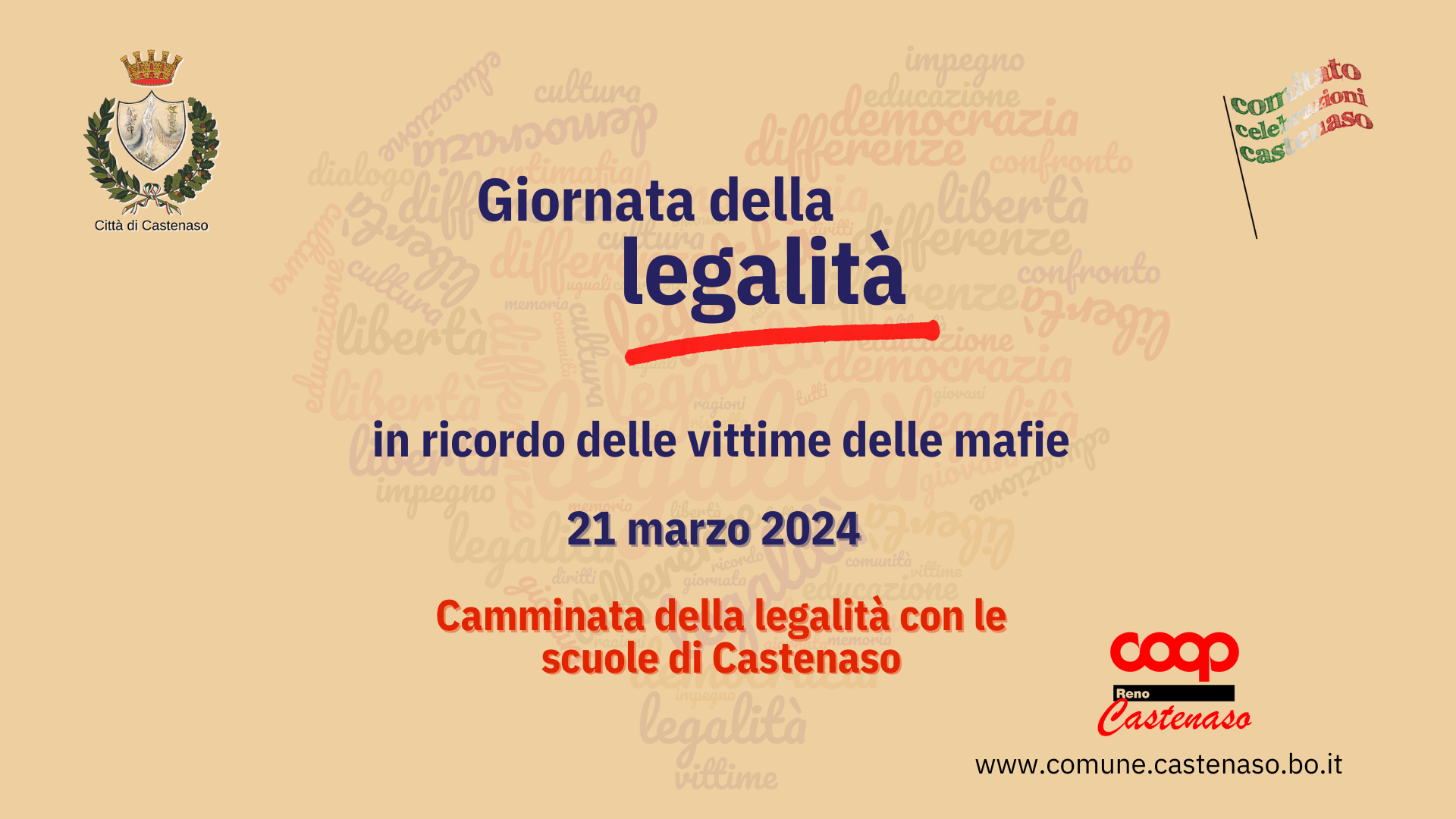 Giovedì 21 marzo 2024 in occasione della Giornata della legalità in ricordo delle vittime delle mafie si terrà la consueta Camminata della legalità con le scuole di Castenaso.