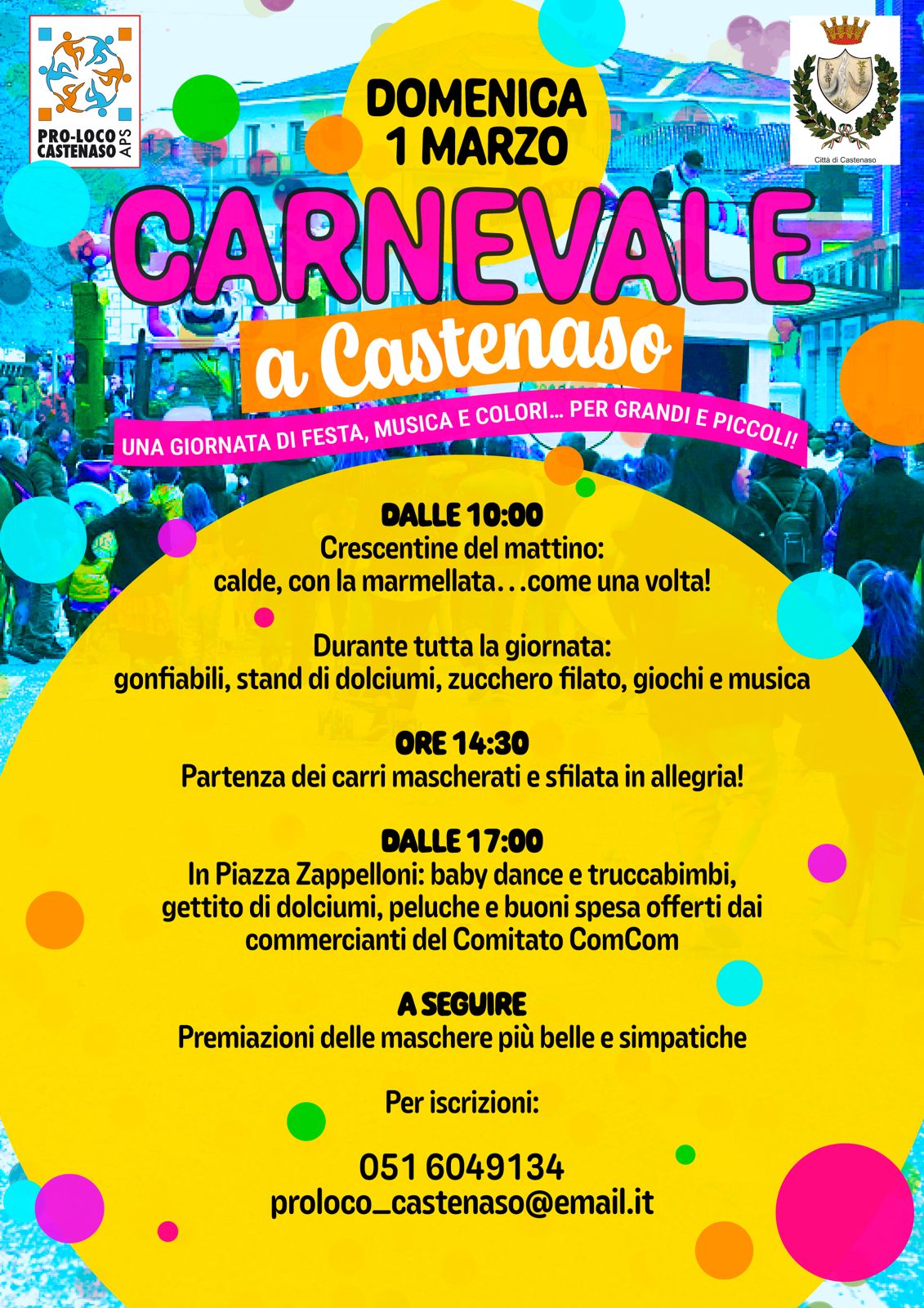 La Pro Loco Castenaso, in collaborazione con il Comitato Commercianti ComCom e con il patrocinio del Comune di Castenaso, vi invita a partecipare al tradizionale appuntamento con il Carnevale!