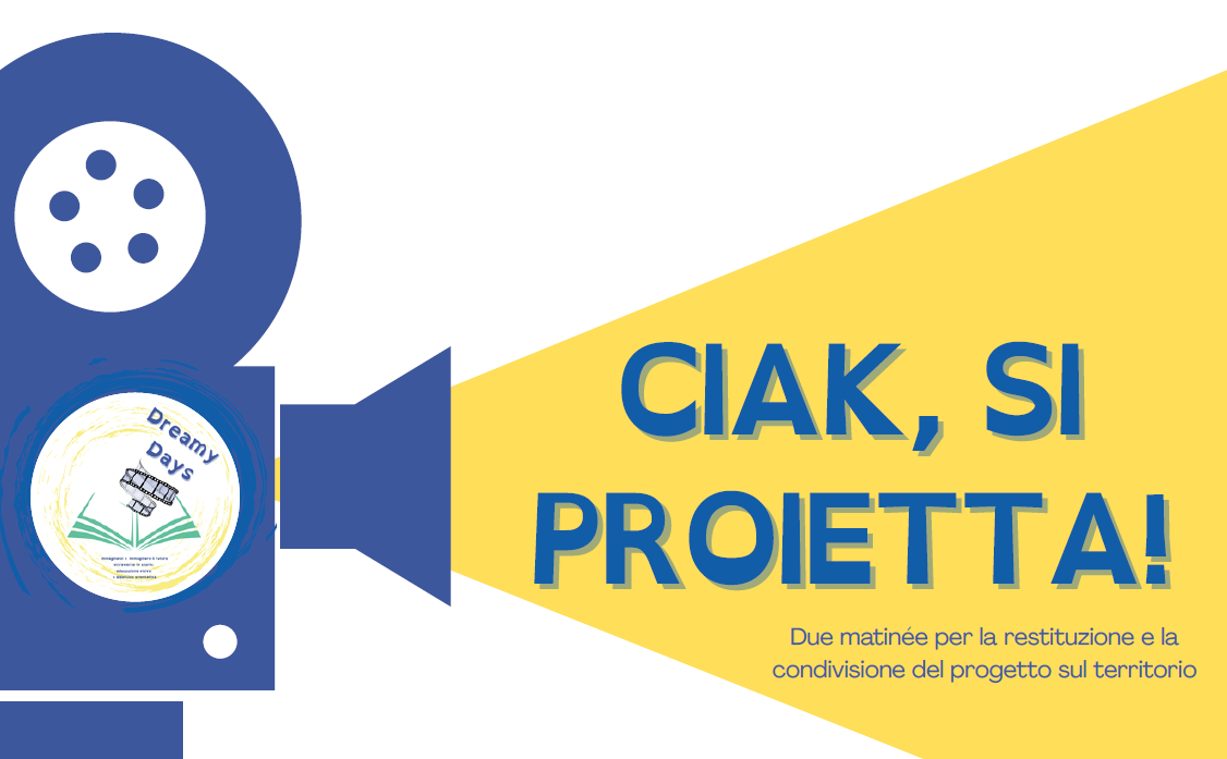 “Ciak, si proietta!” è un’iniziativa dedicata alla restituzione e alla condivisione sul territorio di "Dreamy Days", progetto educativo legato al linguaggio cinematografico. L’evento prevede due matinée rivolte alle scuole, pensate come momenti di incontro e partecipazione, in cui i risultati del percorso svolto vengono presentati e valorizzati.
