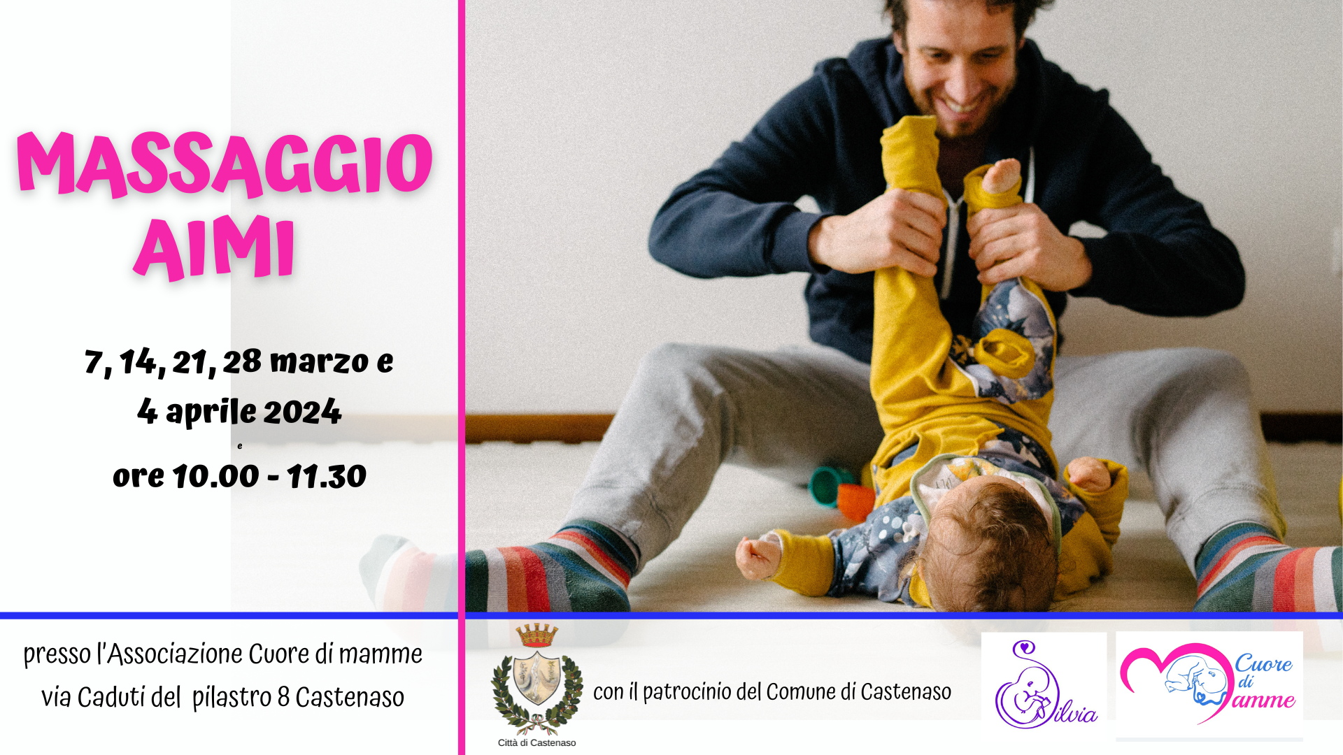 Durante il corso verranno spiegate le sequenze del massaggio AIMI, insieme a informazioni utili per sapere interpretare il pianto o meglio “le richieste” del vostro bebè. Verranno illustrate inoltre modalità per alleviare i comuni disturbi dei neonati (colichette, gas intestinali, reflusso, difficoltà ad evacuare, sonno disturbato...).