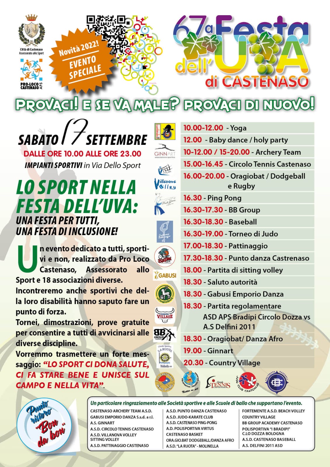 Nel 2022 c'è una novità: sabato 17 settembre, presso gli impianti di via dello Sport scatta una giornata intera dedicata al movimento e al benessere, con la partecipazione di 18 associazioni sportive. Si comincia alle 9 (scarica la locandina!)