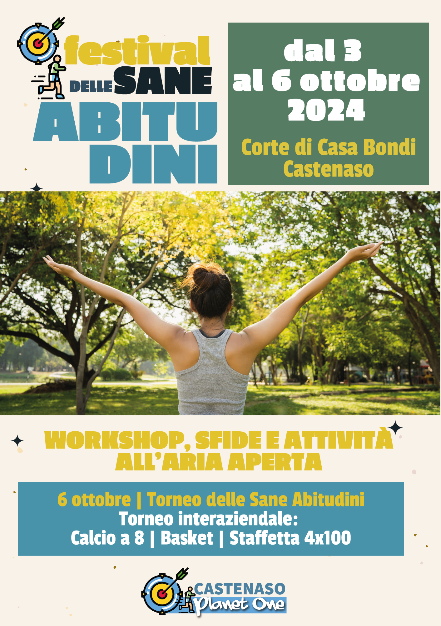 Il Festival delle Sane Abitudini giunto alla sua seconda edizione è un diventato un appuntamento da non perdere per tutti coloro che hanno un interesse a lavorare sul proprio benessere, promuovendo chi è interessato a migliorare il proprio benessere e a promuovere stili di vita sani e sostenibili. Il festival, che si terrà dal 3 al 6 ottobre a Castenaso (BO), sarà arricchito da workshop, presentazioni libri e attività pratiche, con l'obiettivo di ispirare persone e organizzazioni a intraprendere percorsi di vita più equilibrati e consapevoli.