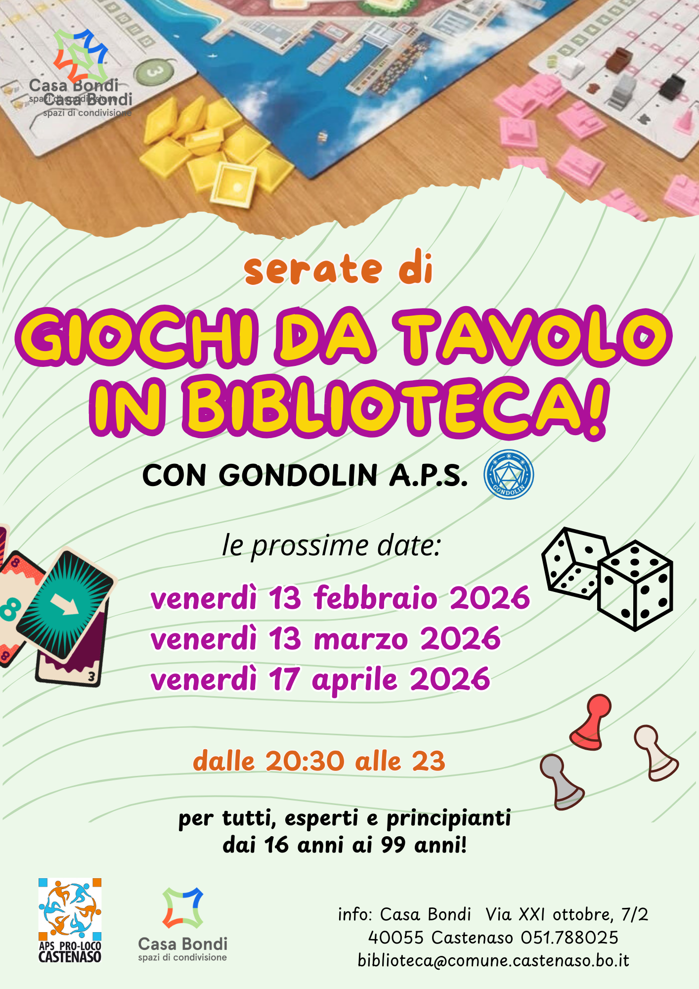Tornano a Casa Bondi le serate dedicate ai giochi da tavolo, pensate per giovani e adulti (dai 16 ai 99 anni) e aperte a tutti coloro che desiderano partecipare.