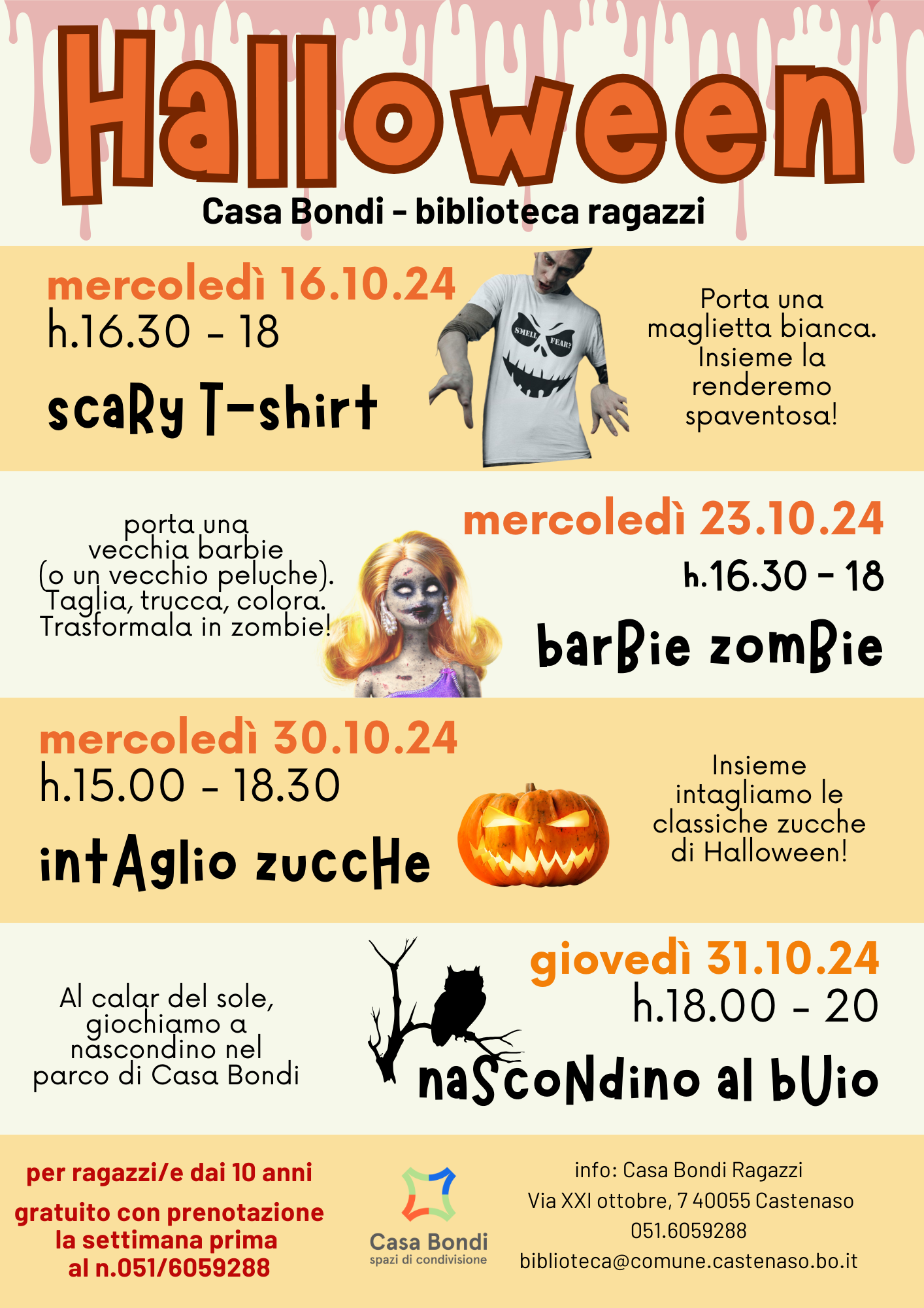 Nel mese di ottobre, letture e laboratori per bambini e ragazzi per ragazzi/e da 10 anni. Attività gratuite con prenotazione al n.051/6059288 una settimana prima del laboratorio