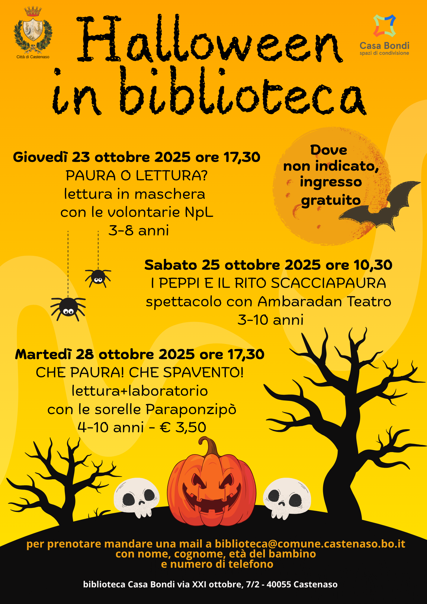 Per prenotare: scrivere a biblioteca@comune.castenaso.bo.it indicando nome, cognome, età del