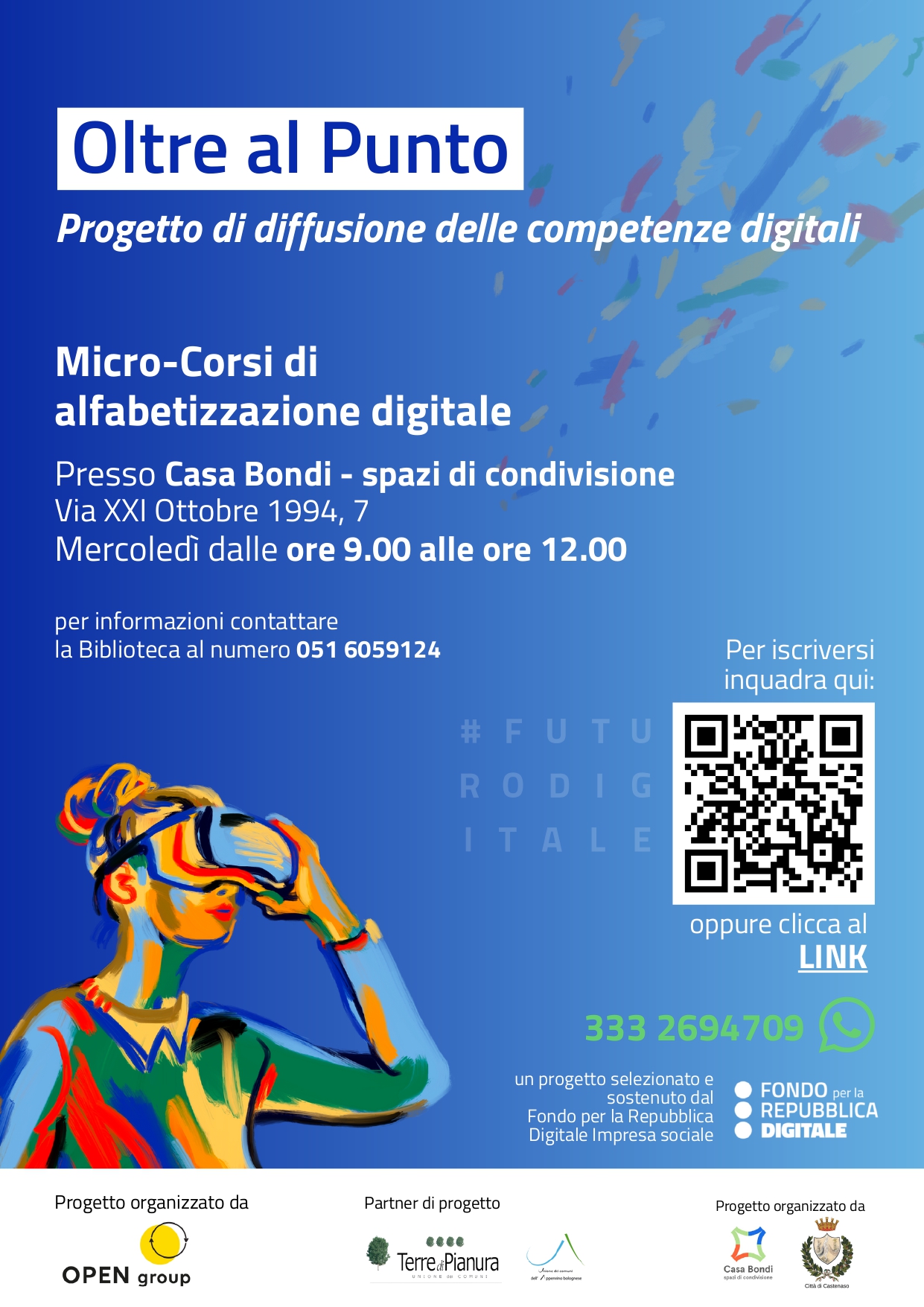 L'iniziativa rientra nel programma Digitale Facile in Emilia-Romagna, con Open Group, ed è un progetto selezionato e sostenuto dal Fondo per la Repubblica Digitale - Impresa Sociale.