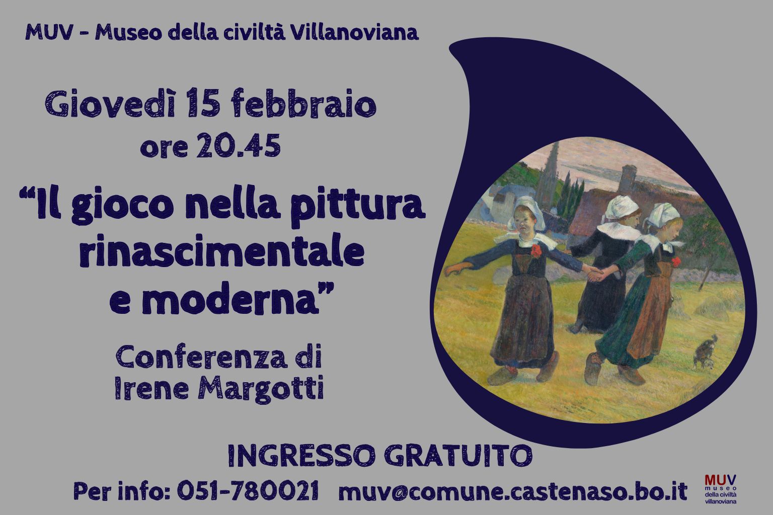 Da luogo rituale a spazio ludico, il gioco è stato protagonista di diverse tele dipinte, tra ambienti raffinati e situazioni popolari. Tra pittura rinascimentale e pittura moderna, singolari scene di gioco hanno attraversato secoli e geografie, descrivendo numerose categorie sociali, ritraendo infanzia ed età adulta. Situazioni corali e intimi momenti di gioco diventano curiosi soggetti dello sguardo del pittore, che farà del gioco un pretesto per indagare la realtà e per raccontare interessanti aspetti della società del proprio tempo.