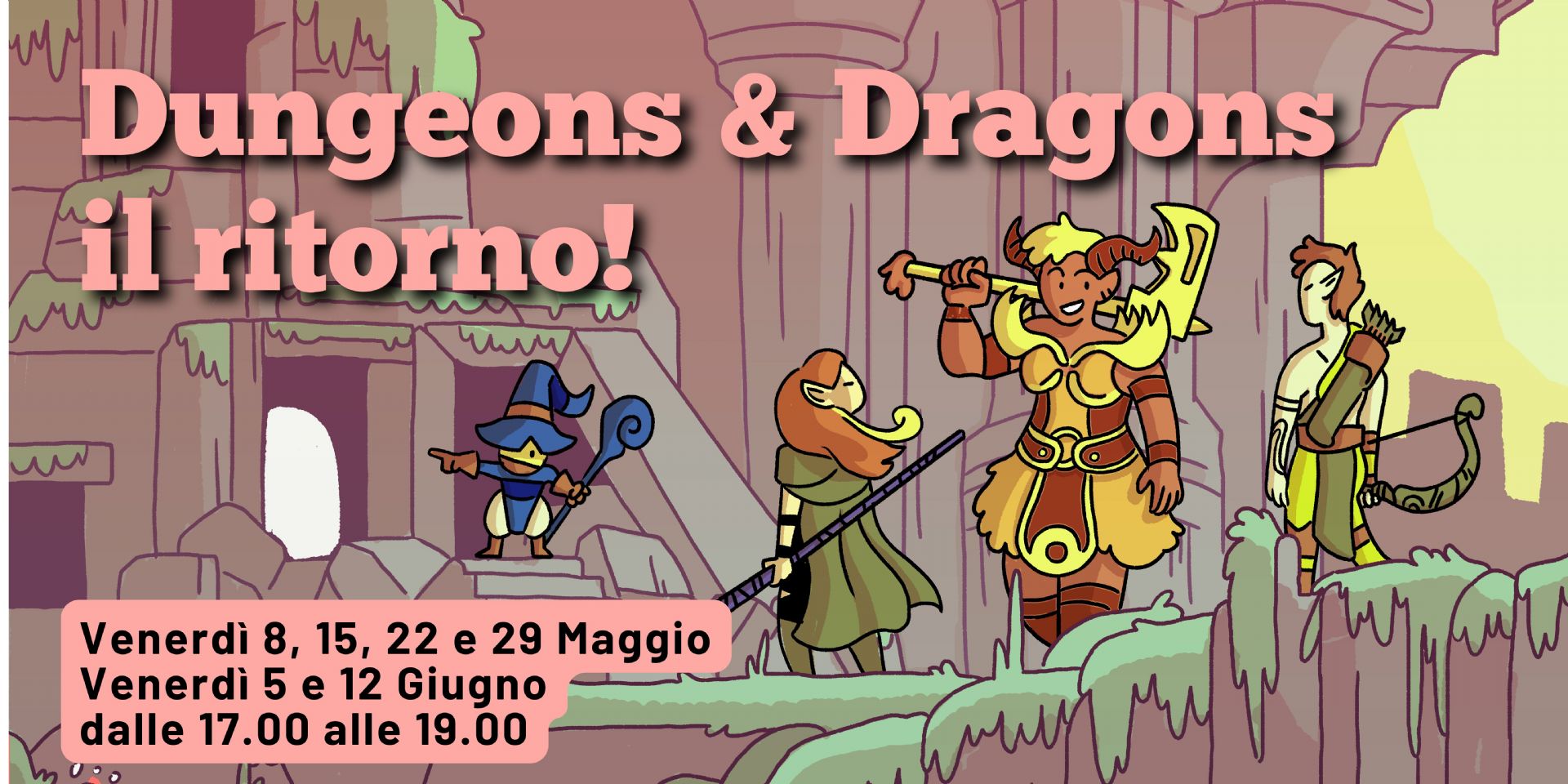 Avventurieri, a raccolta! Sappiamo quanto vi siano piaciute le scorse sessioni, perciò stiamo preparando tutto il necessario per far ripartire i nostri incontri di D&D. Insieme a Svelamondi, abbiamo immaginato un nuovo percorso dedicato a chiunque abbia tra gli 11 e i 17 anni, dai guerrieri esperti a chi non ha mai lanciato un dado in mano.