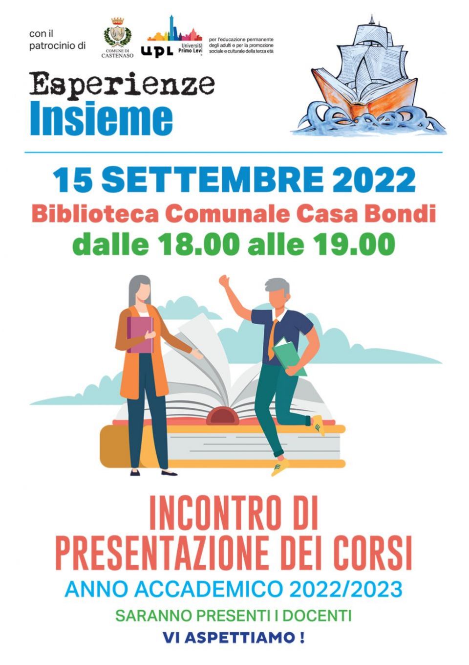 🟢Incontro di presentazione dei corsi organizzati a Castenaso dell’Associazione Esperienze Insieme, affiliata all’Università Primo Levi, anno accademico 2022-2023