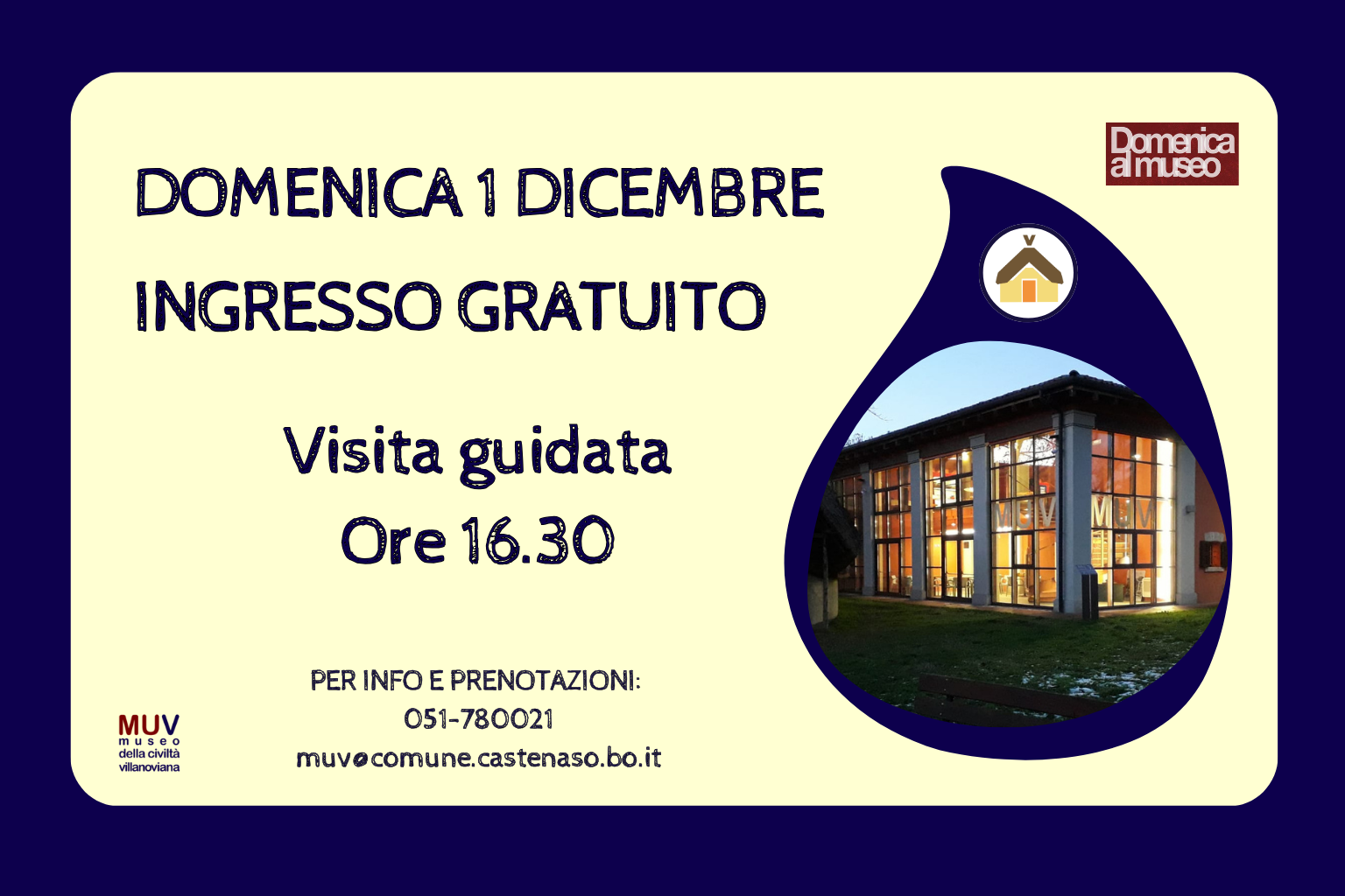 Prenotazione: 051-780021 oppure muv@comune.castenaso.bo.it