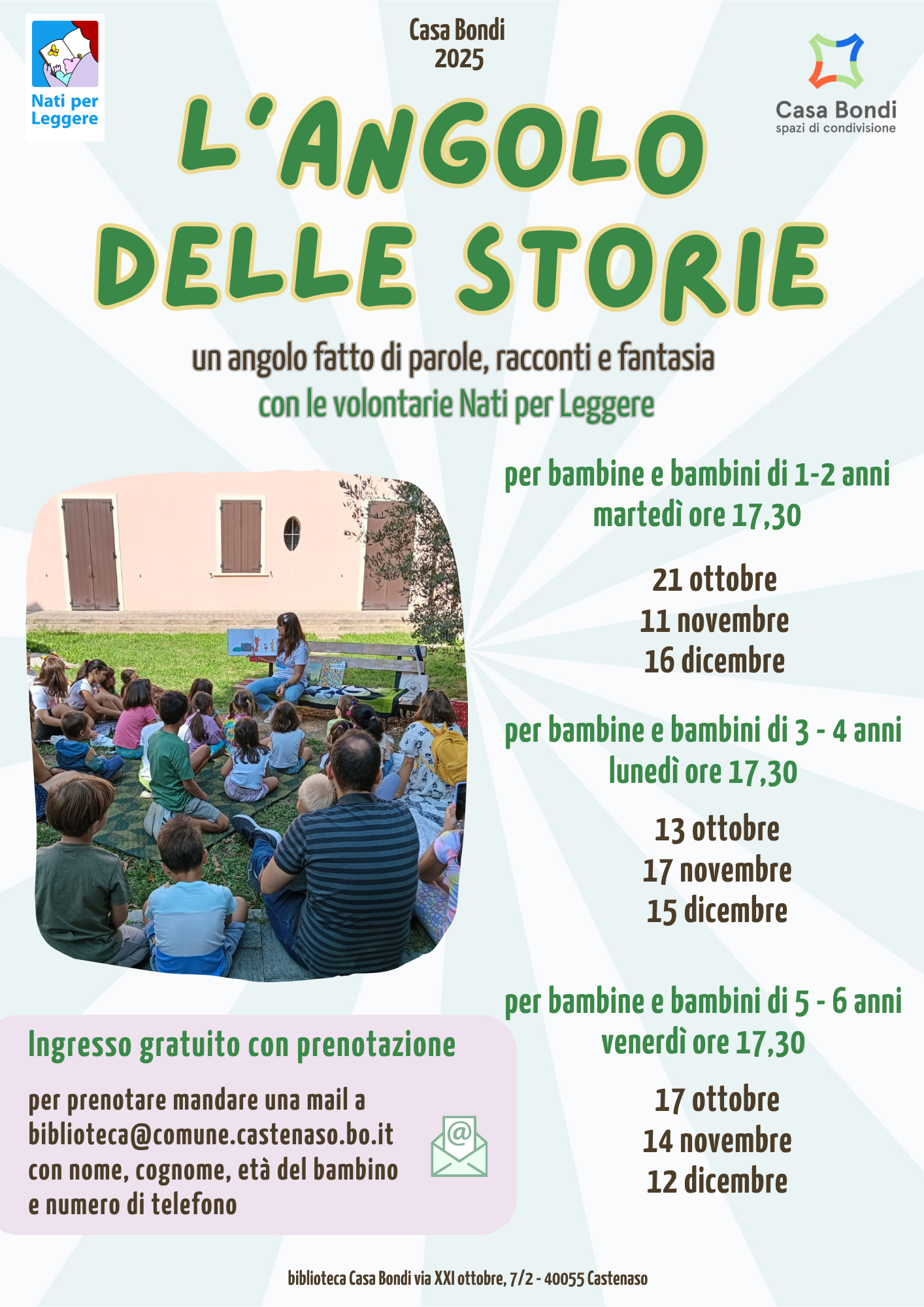 Un angolo fatto di parole, racconti e fantasia: torna a Casa Bondi "L'angolo delle storie", il ciclo di letture a cura delle volontarie Nati per Leggere, pensato per avvicinare bambine e bambini al piacere della lettura fin dai primi anni di vita.