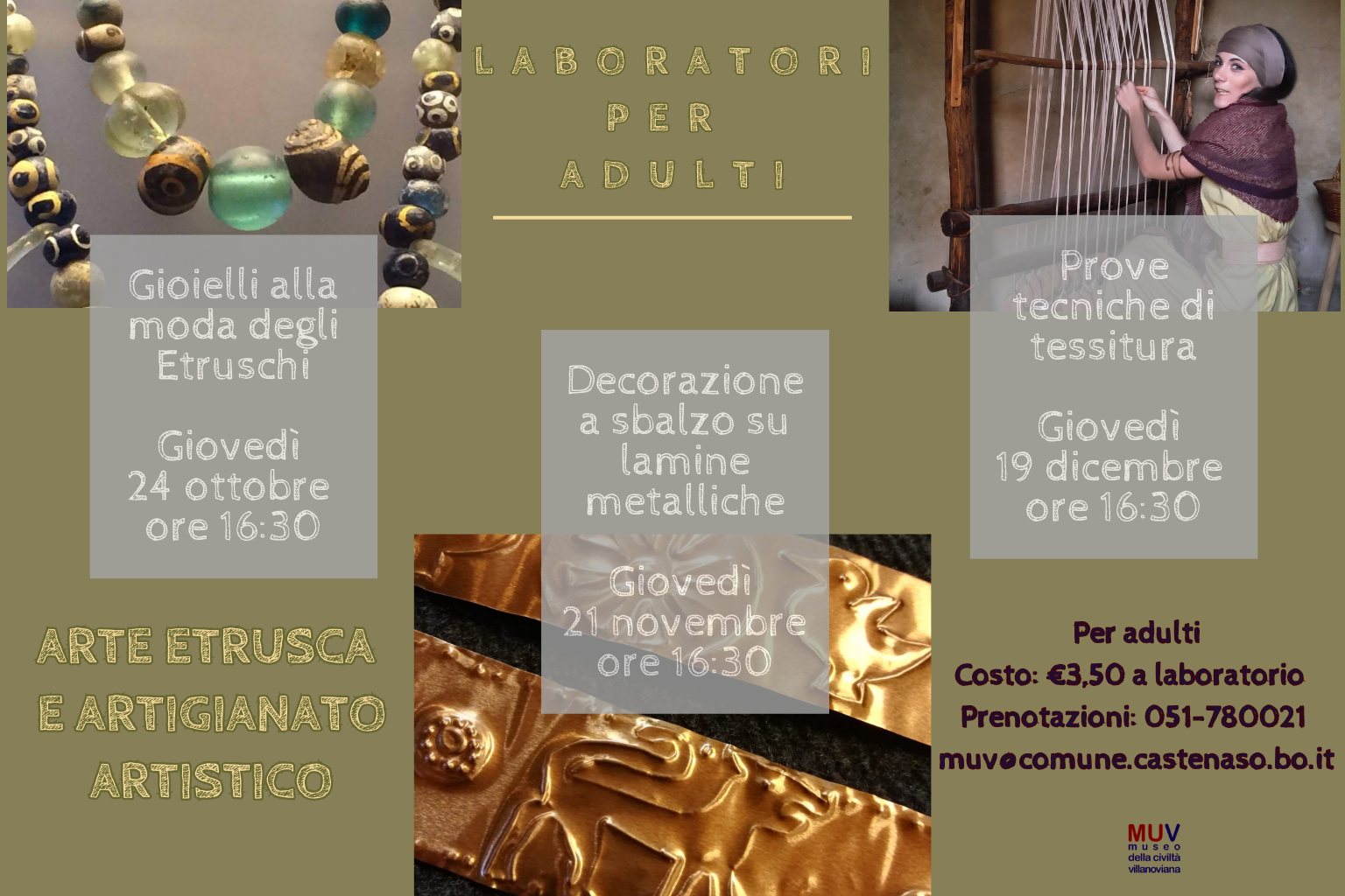 Per la prima volta il Museo propone un corso sperimentale di artigianato villanoviano rivolto ad un pubblico adulto, che si svilupperà su tre appuntamenti pomeridiani, uno al mese, a partire da ottobre e che vedrà l'unione dell'esperienza pratica e manuale all'approfondimento di contenuti archeologici.