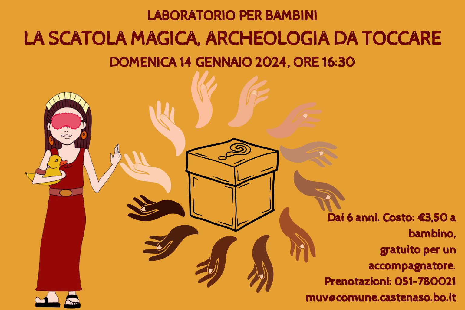 Gennaio al MUV, ovvero il mese dei sensi. In questa domenica i nostri piccoli visitatori potranno vivere un’esperienza sensoriale esplorando e cercando di riconoscere le forme di alcuni oggetti tipici della cultura villanoviana senza l’aiuto della vista. Dopo una visita guidata ai corredi della necropoli di Marano di Castenaso e alla capanna, i bambini potranno toccare ad occhi chiusi le ricostruzioni di alcuni reperti, una volta riconosciuti ne realizzeranno una copia da portare a casa.