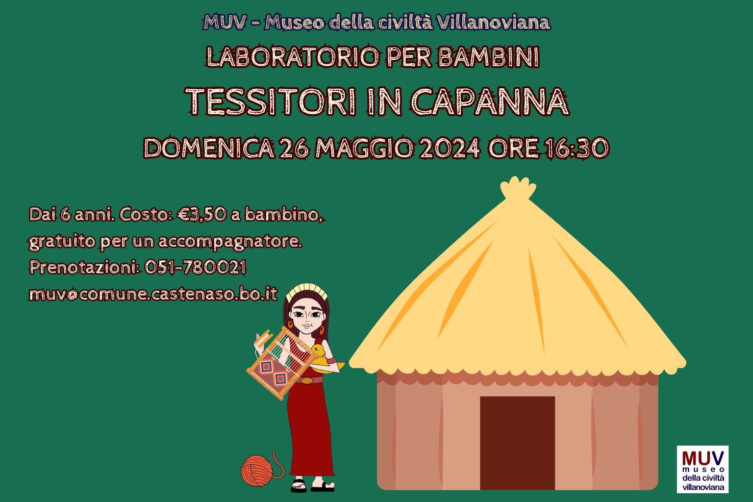 Spoletta, filo di trama, filo di ordito...Tessere, un processo apparentemente semplice, che per i Villanoviani rappresentava il modo per fabbricare tessuti. Ma come si utilizzava il telaio verticale? Domenica 26 maggio lo scopriremo insieme! Alle ore 16.30, dopo una visita guidata a tema i bimbi potranno realizzare con le loro mani un tessuto da potare a casa. Un’esperienza da non perdere nella suggestiva cornice della capanna villanoviana!