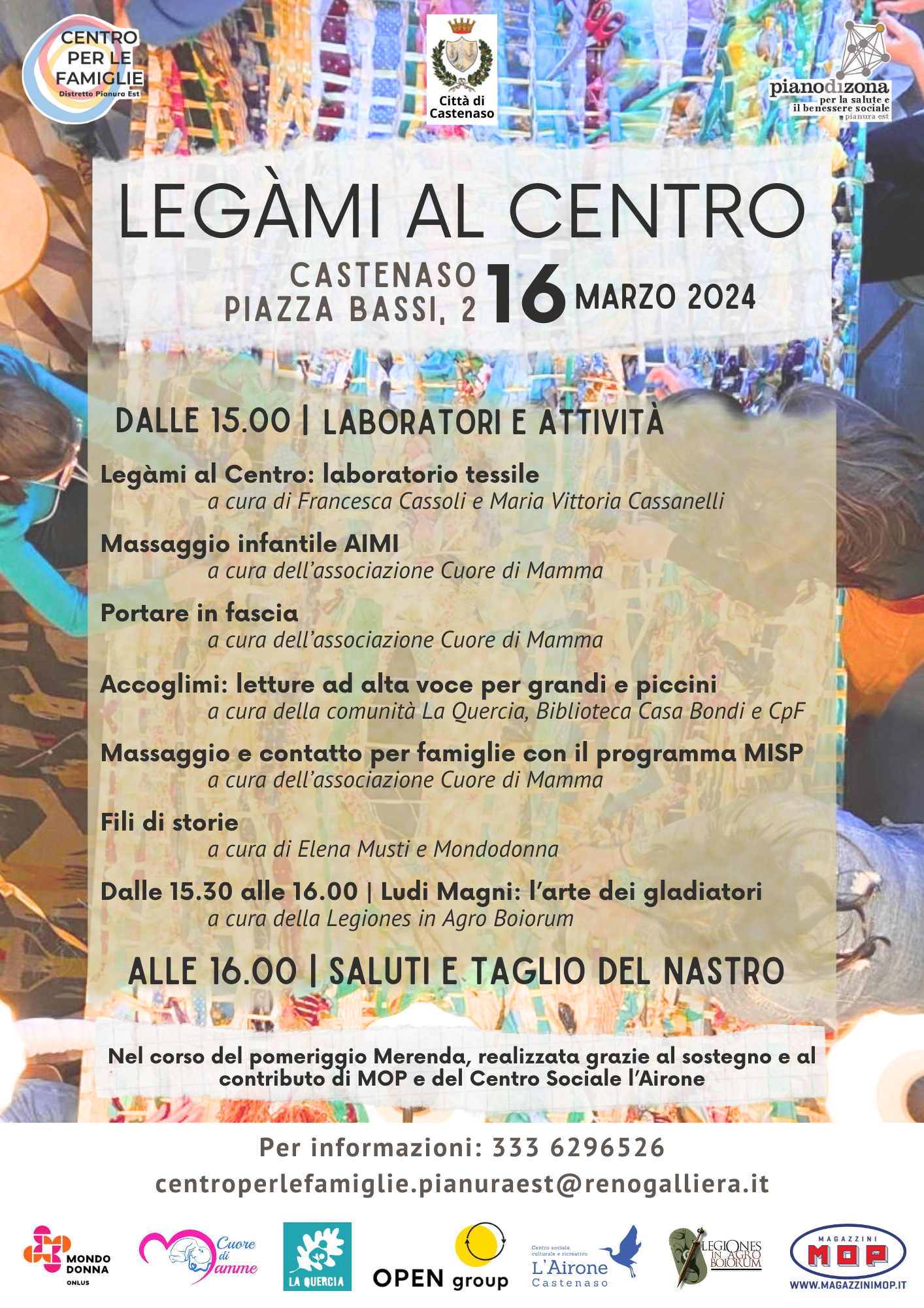 Sabato 16 marzo 2024 si terrà l'inaugurazione della nuova sede del Centro per le Famiglie a Castenaso a partire dalle ore 15.00