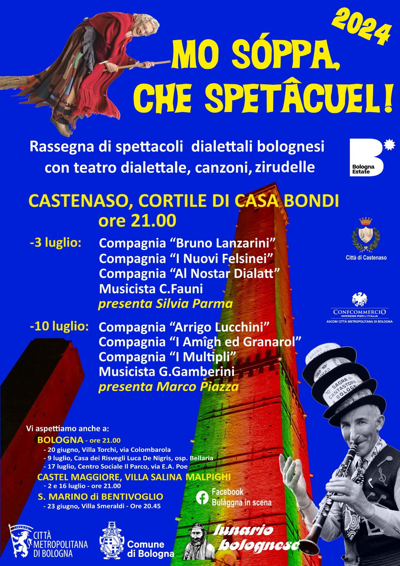 Mo soppa che spetacuel! è la rassegna di Bologna Estate dedicata al teatro dialettale nelle diverse declinazioni: scenette, zirudelle e canzoni.