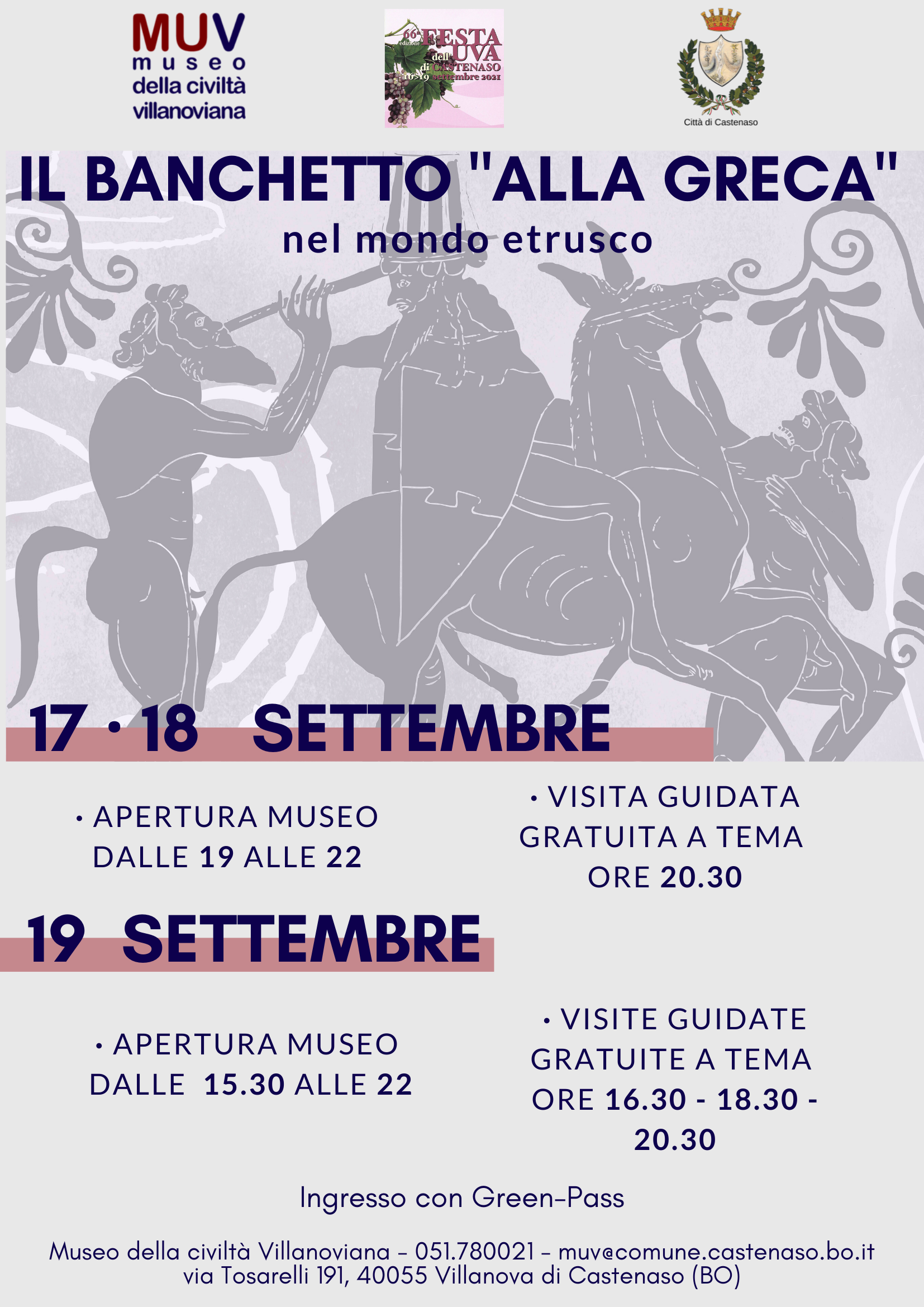 Con l'occasione della presenza della Taverna Greca al Centro Sociale Casa Sant’Anna di Villanova, il MUV apre venerdì 17, sabato 18 e domenica 19 settembre con una serie di visite guidate gratuite a tema.