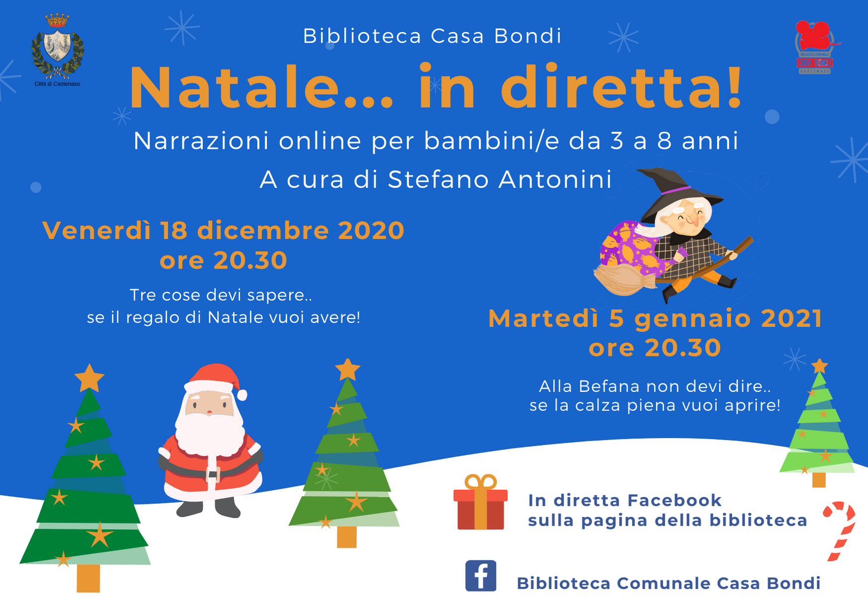Per partecipare, segui la diretta sulla pagina Facebook della biblioteca venerdì 18 dicembre e martedì 5 gennaio alle 20.30,