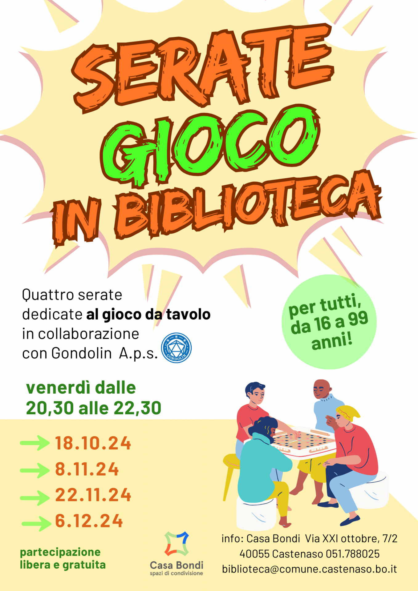 Sta per partire una nuova iniziativa a Casa Bondi: serate di giochi da tavolo destinate ad un pubblico di adulti e giovani (+16), aperte a tutti coloro che desiderano partecipare.