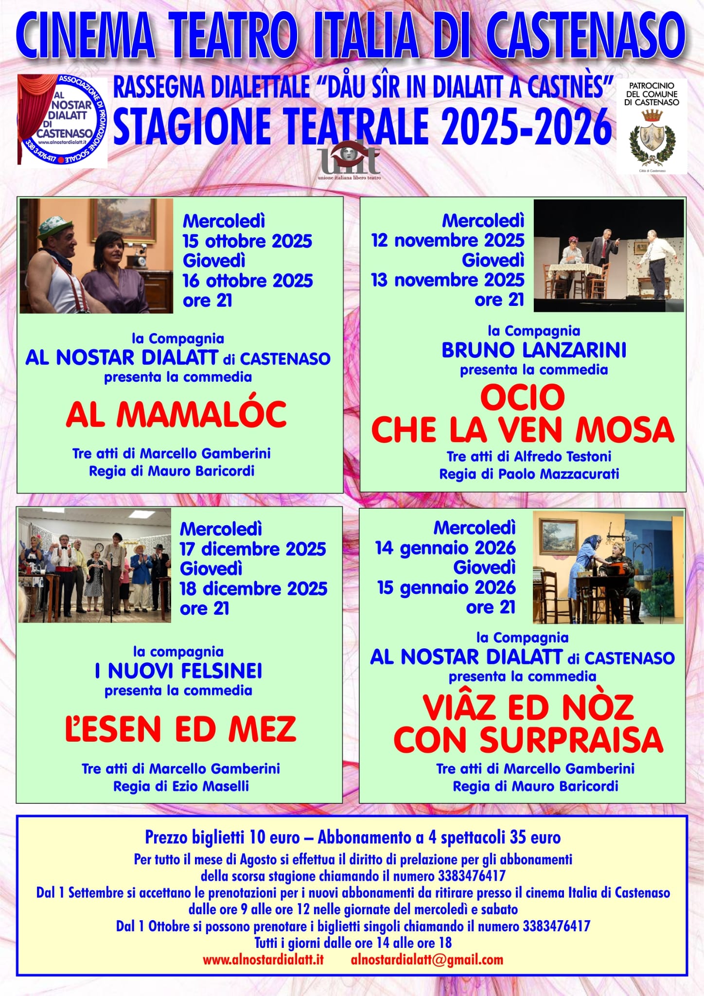 Dal 1° settembre sarà possibile prenotare i nuovi abbonamenti e ritirarli presso il Cinema Teatro Italia di Castenaso, il mercoledì e sabato dalle 9 alle 12 e dalle 16 alle 18.