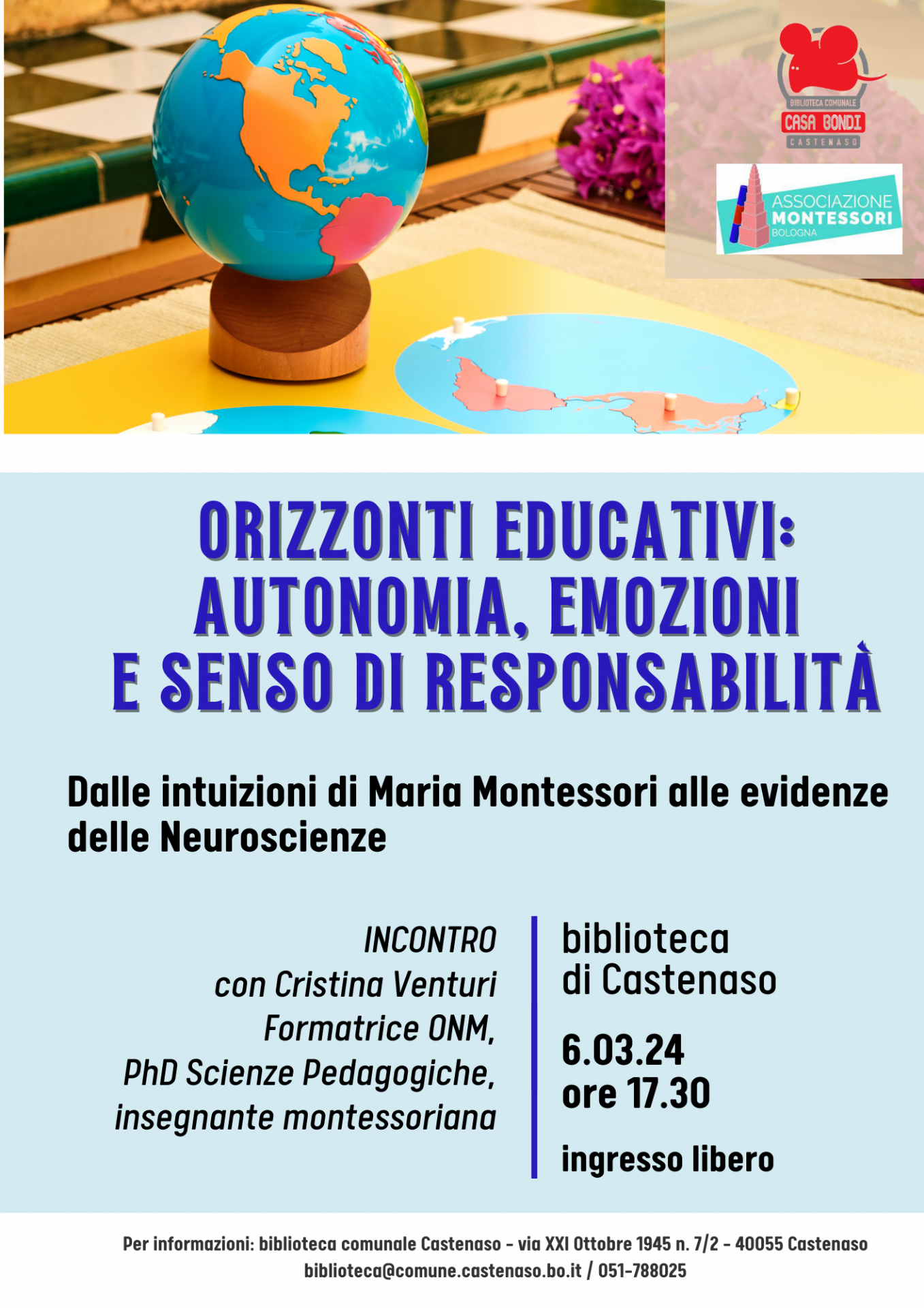 Mercoledì 6 marzo 2024 la biblioteca ospiterà un incontro rivolto a genitori ed educatori sul tema della psicopedagogia montessoriana.