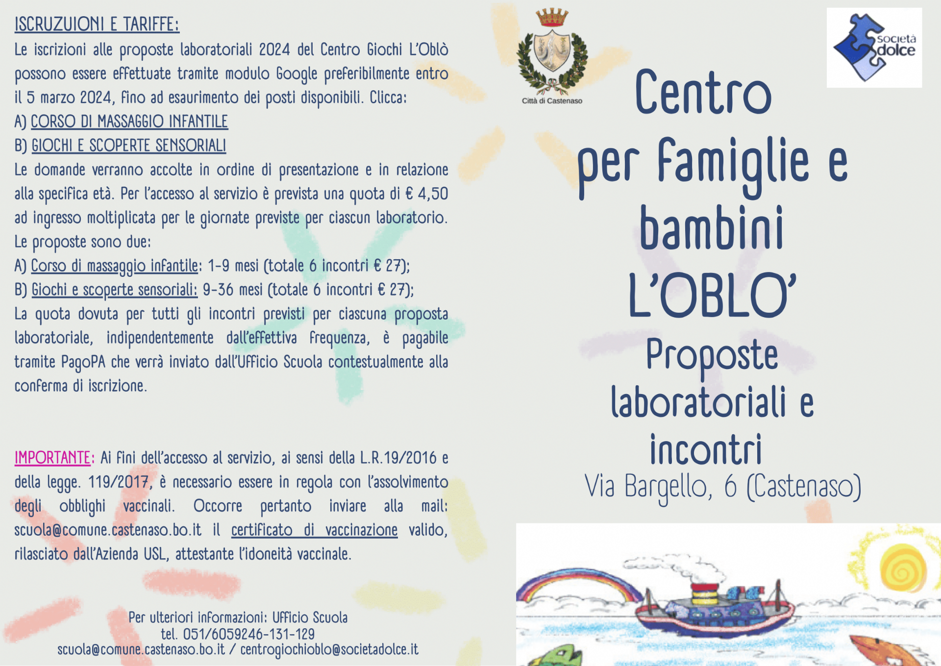 Le iscrizioni alle due tipologie di laboratori proposte potranno essere effettuate tramite moduli Google accessibili tramite appositi link inseriti nel volantino e che si riportano di seguito: