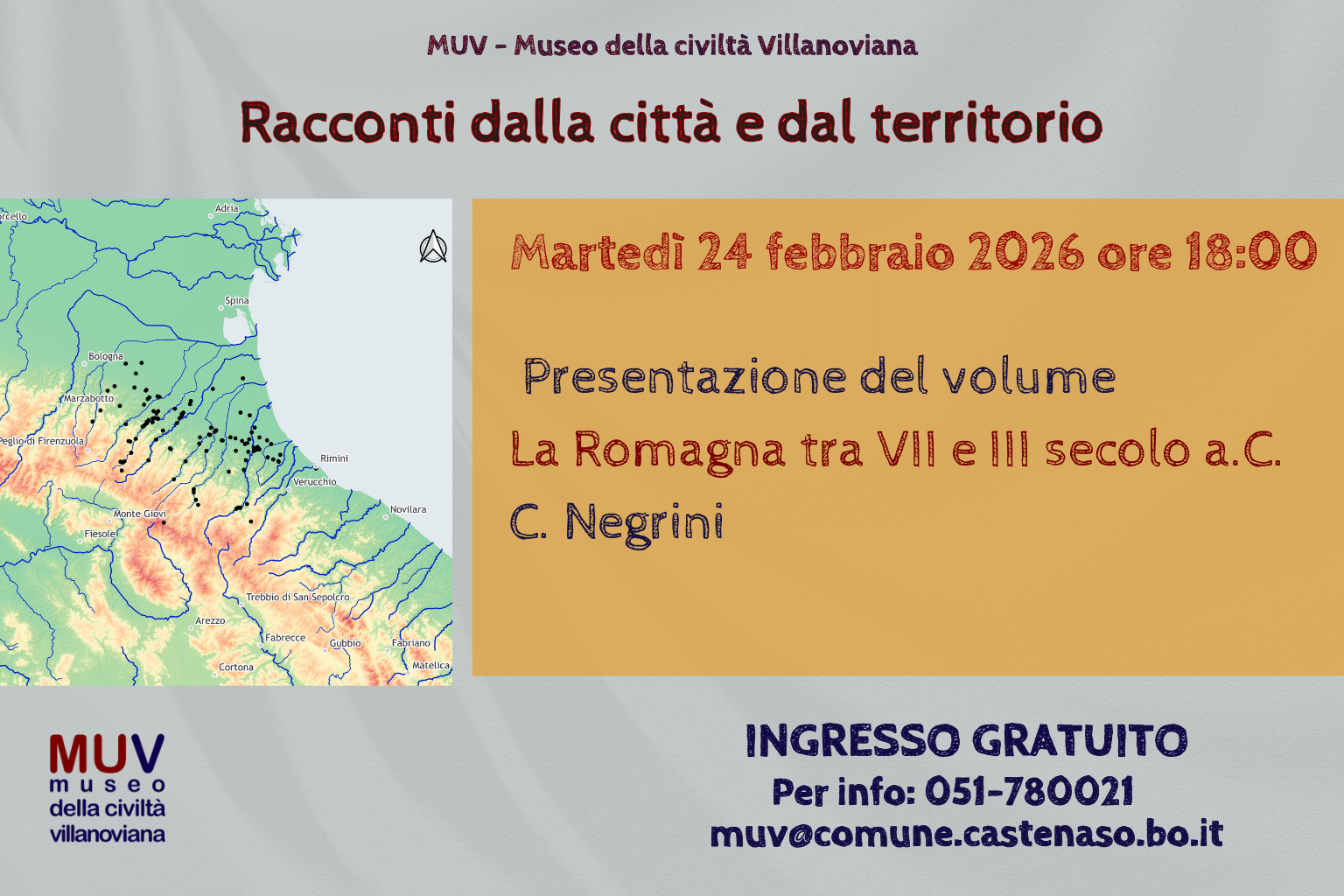 Il secondo appuntamento della rassegna Racconti dalla città e dal territorio, di martedì 24 febbraio, è dedicato al terzo volume della collana scientifica austriaca «PHERSU», promossa dalla cattedra di Etruscologia dell’Istituto di Storia Antica dell’Università di Vienna, e ha come tema la Romagna durante la seconda età del ferro. In particolare, il libro La Romagna tra VII e III secolo a.C analizza quelle popolazioni provenienti dall’Italia centrale appenninica che hanno occupato gran parte della Romagna interna tra il VII ed il III sec. a.C.