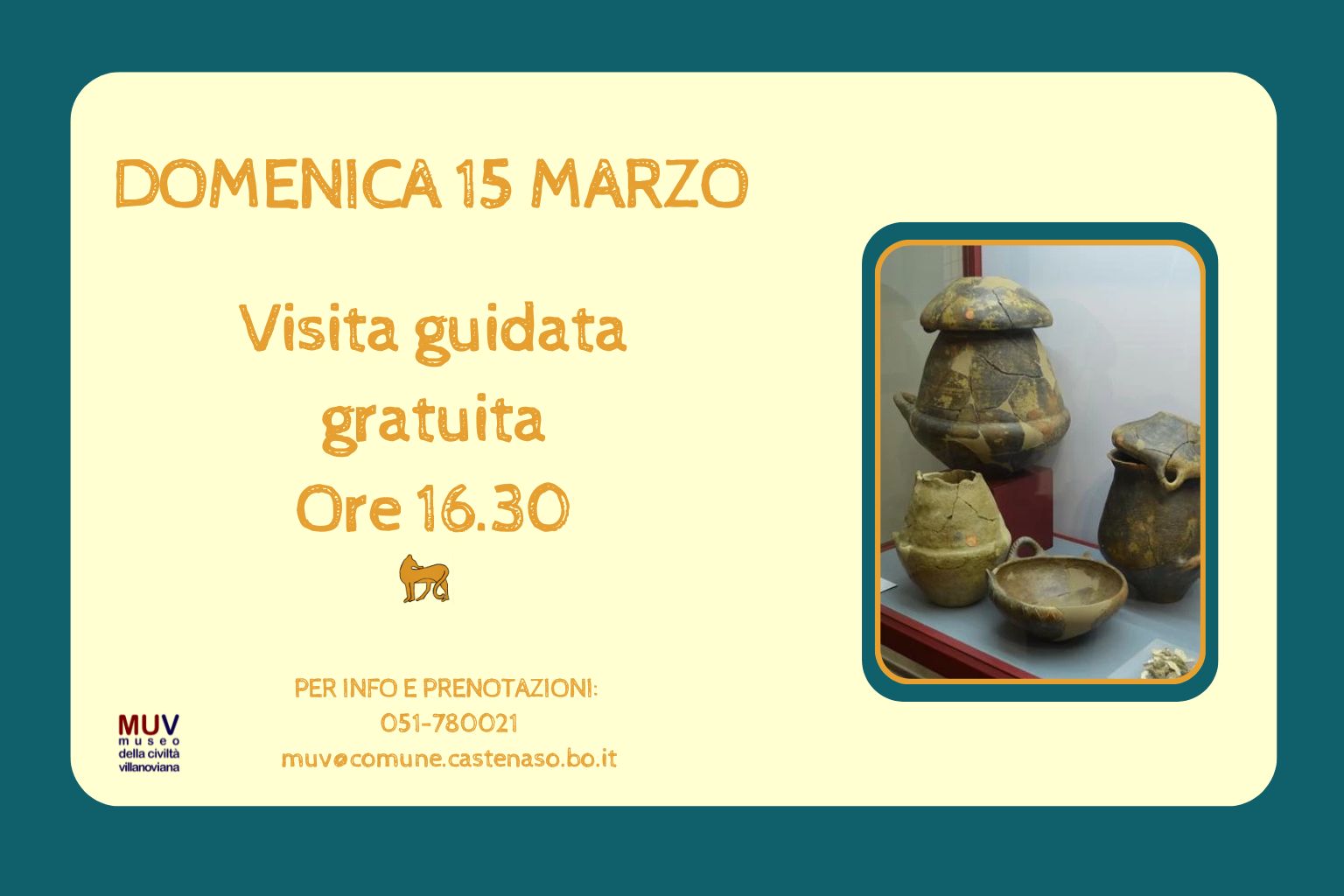 Dove: MUV – Museo della civiltà Villanoviana (v. Tosarelli 191 – Villanova di Castenaso)